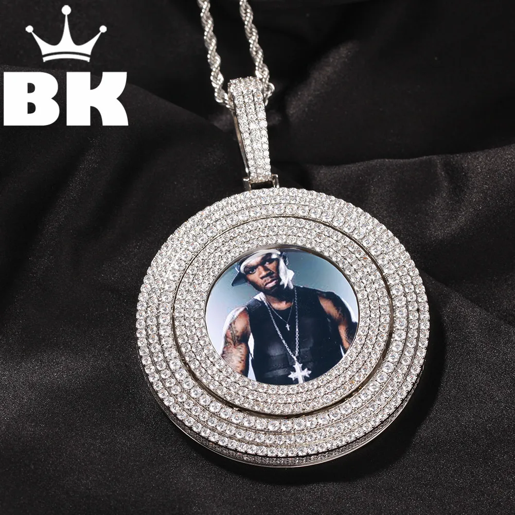 The Bling King White 65mm Rotating Custom Photo Pendant Necklace Gold Color Full Iced Out Zircon Round Tag Hiphop Jewelry Necklace Aliexpress